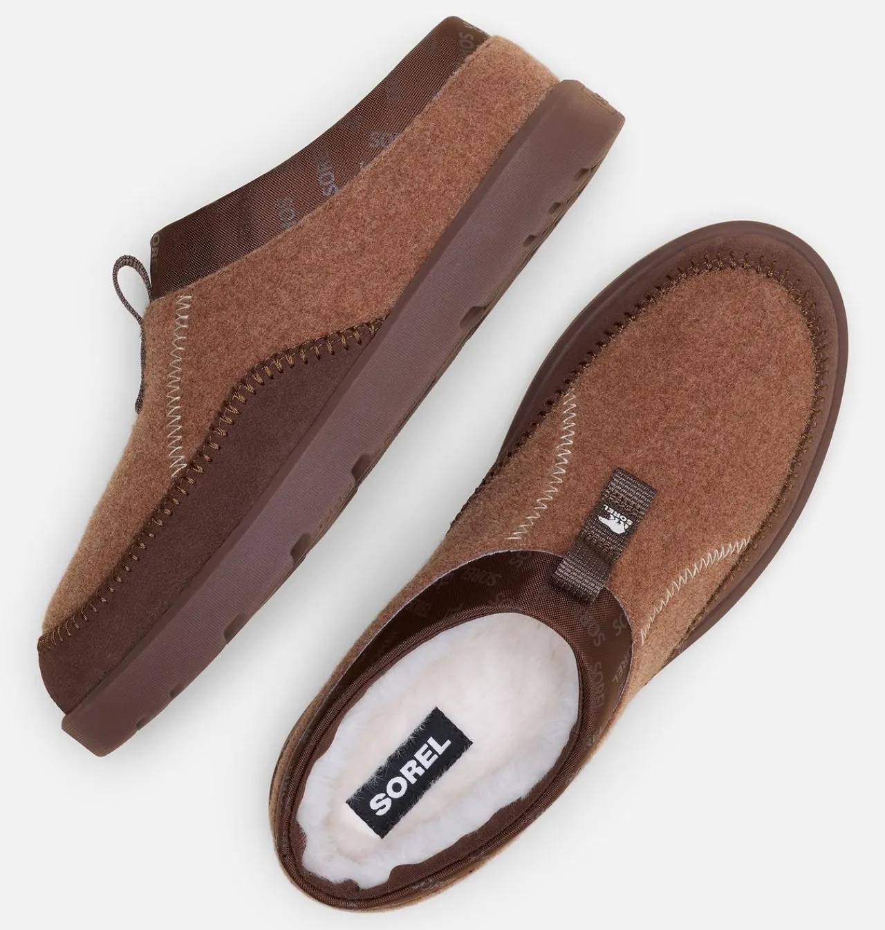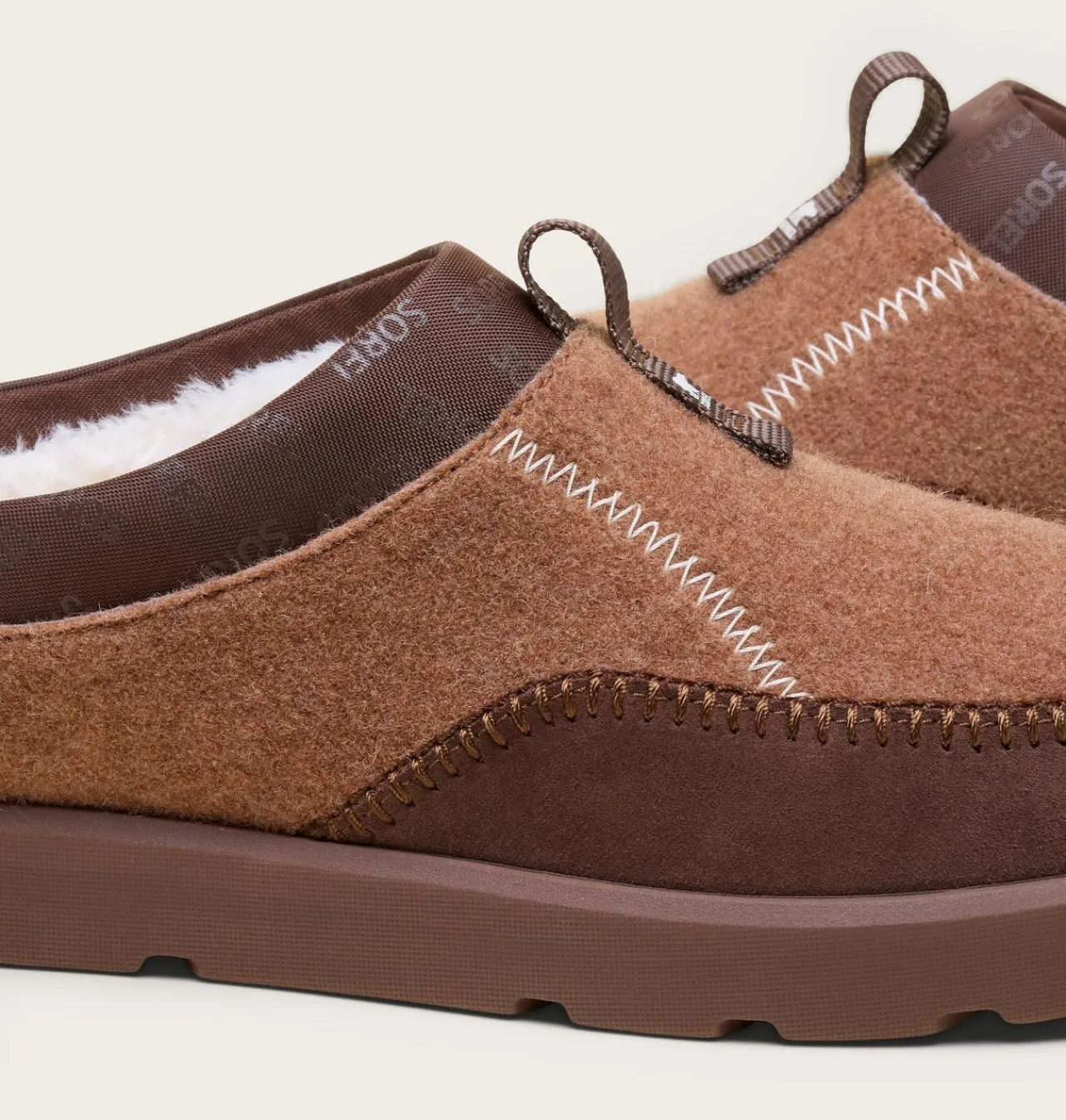 - UPPER: Felt upper with suede mudguard and crafted stitch. Repeat SOREL gloss print logo in collar. Faux fur lined.